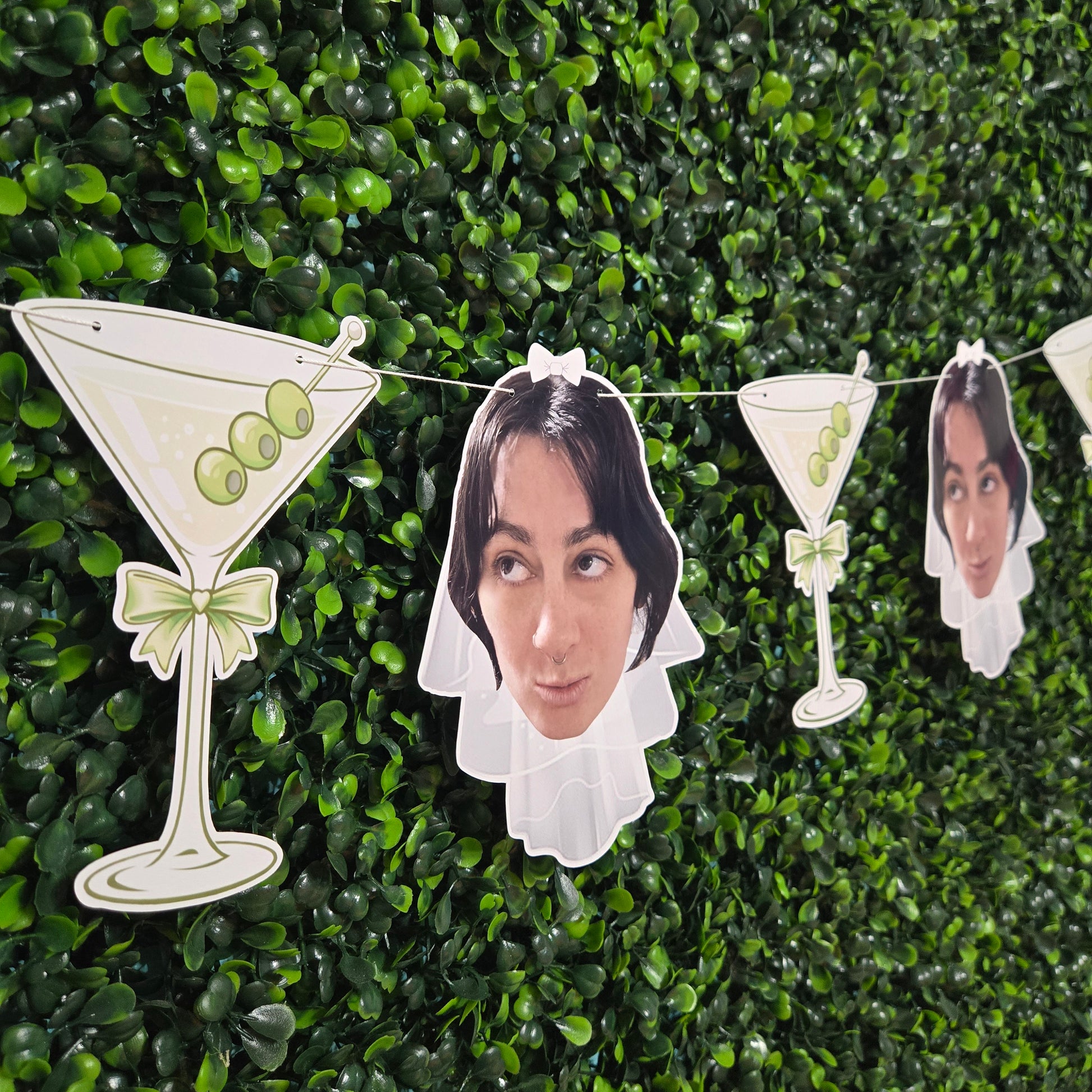 This personalized Bride Face Martini decoration is the ultimate on-trend bachelorette party decor for the bride who loves a good cocktail moment.