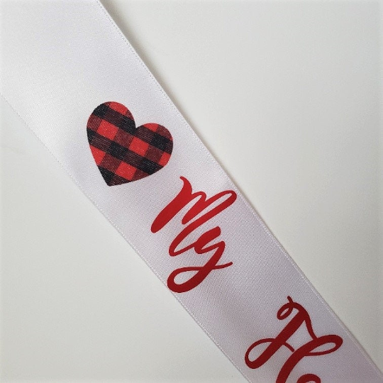 Featuring hand sewn Buffalo Check Plaid Hearts on White Satin, this sash is sure to add the perfect touch to any Fall or Winter Bachelorette Party, Camp Bachelorette Theme, or Outdoor Bach Destination.