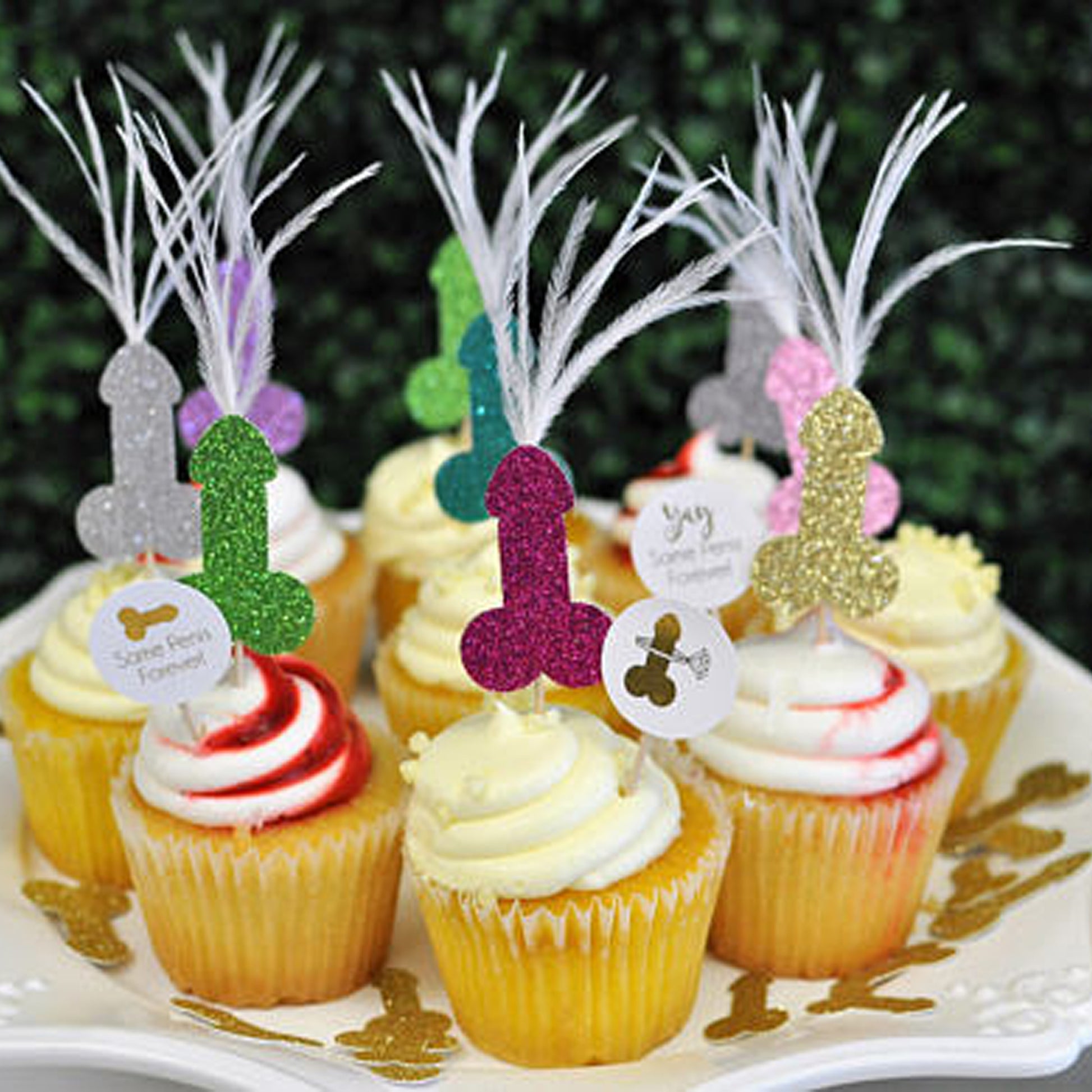 Penis Cupcake Toppers with Feathers