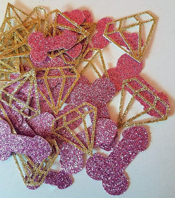 Penis Party Confetti Dicks & Diamonds Confetti- Bachelorette Party, Hen Party, Penis Party, Same Penis Forever Decor, Penis Confetti, Gold