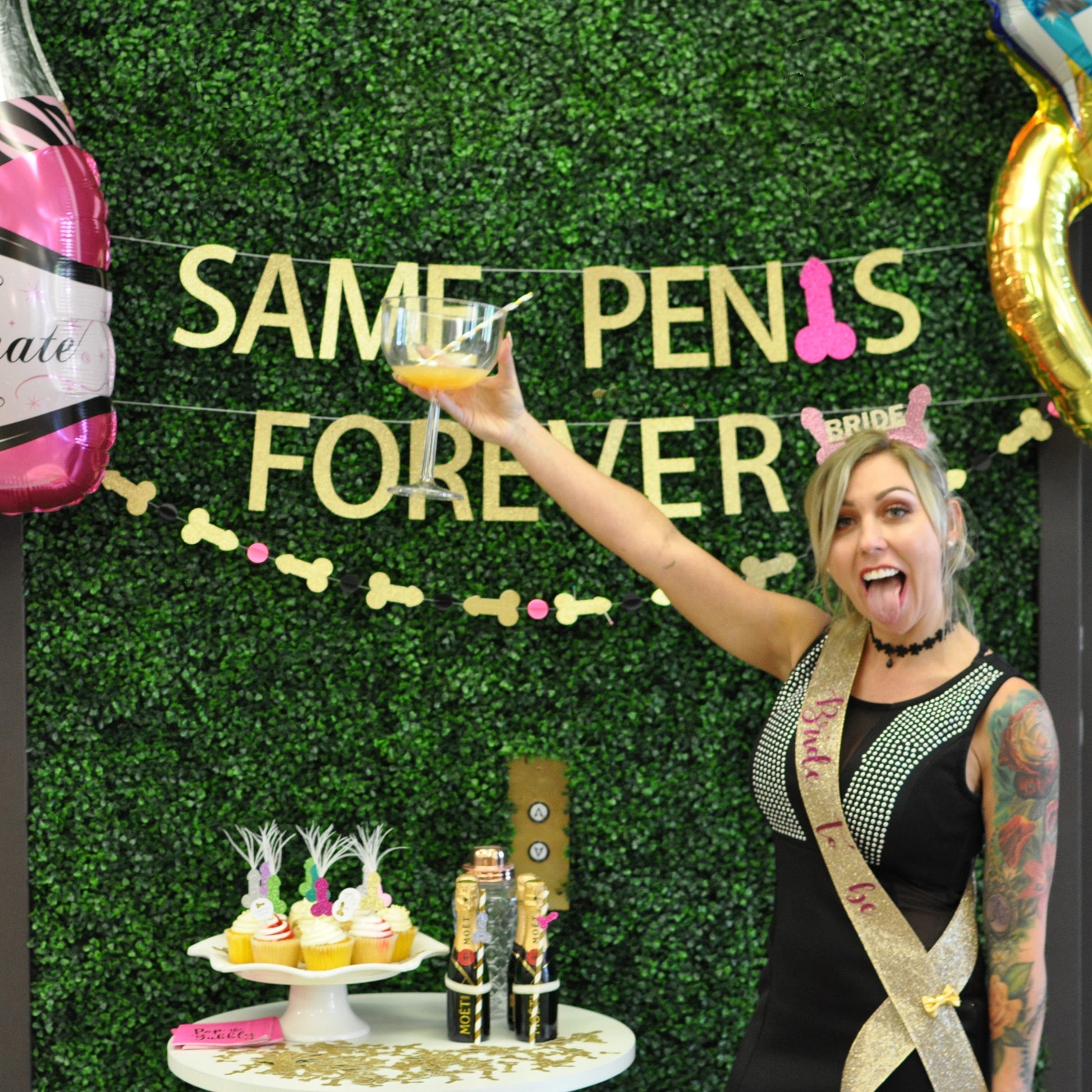 Provide the perfect backdrop for the Bride To Be with our original "Same Penis Forever" banner!